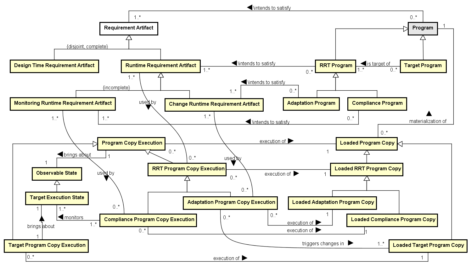 RRT Program (0..*) \intends to satisfy (1..*) Runtime Requirement Artifact